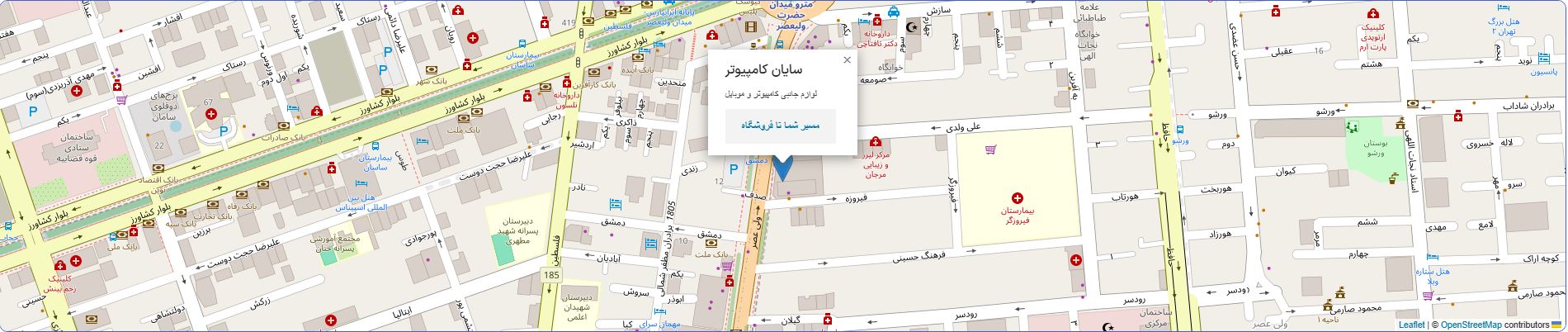 خیابان ولیعصر، بالاتر از چهارراه طالقانی، نبش کوچه فیروزه، مرکز کامپیوتر ولیعصر، طبقه همکف، راهروی A، پلاک 75، کامپیوتر سایان