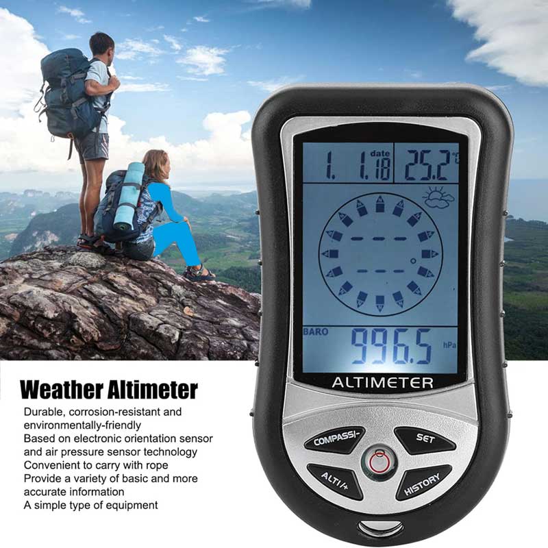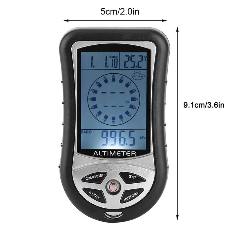 این دستگاه، یک ابزار اندازه‌گیری ساده است که برای علاقه‌مندان به ورزش‌های فضای باز ساخته شده است. این دستگاه کاملاً کاربردی است و می‌تواند اطلاعاتی مانند ارتفاع، موقعیت، فشار هوا، زمان و دما را ارائه دهد. این دستگاه چند منظوره می‌تواند نور پس‌زمینه فوق‌العاده روشنی را ارائه دهد، صرف نظر از محیط، می‌توانید مقادیر را به وضوح روی صفحه نمایش LCD مشاهده کنید. این دستگاه دارای محدوده اندازه‌گیری وسیع و دقت بالایی است و می‌تواند اطلاعات دقیقی را در فضای باز در اختیار شما قرار دهد. این دستگاه با 2 باتری AAA (شامل نمی‌شود) تغذیه می‌شود و دارای عملکرد صرفه‌جویی در مصرف برق است، بنابراین لازم نیست نگران شارژ آن در فضای باز باشید. اگر به هر دلیلی از محصولات یا خدمات ما راضی نیستید، لطفاً با ما تماس بگیرید و به ما فرصت دهید تا مشکل را حل کنیم. ما به عنوان هدف نهایی خود، یک تجربه خرید خوب را برای مشتریان به ارمغان خواهیم آورد.