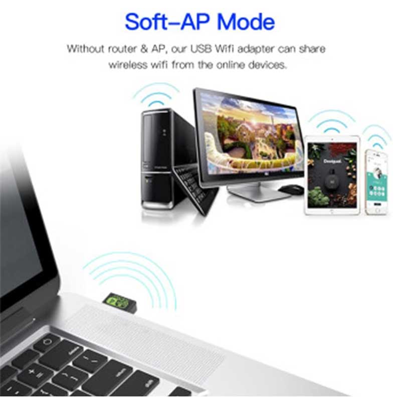 چیپست: Reatek 8811GU. حداکثر سرعت تا ۲.۴ گیگاهرتز ۱۵۰ مگابیت در ثانیه. سازگار با ۸۰۲.۱۱ b/g/n. سازگار با ویندوز ۱۰/۸.۱/۸/۷/XP. درایور FREE، بدون نیاز به سی‌دی یا دانلود آنلاین درایور.