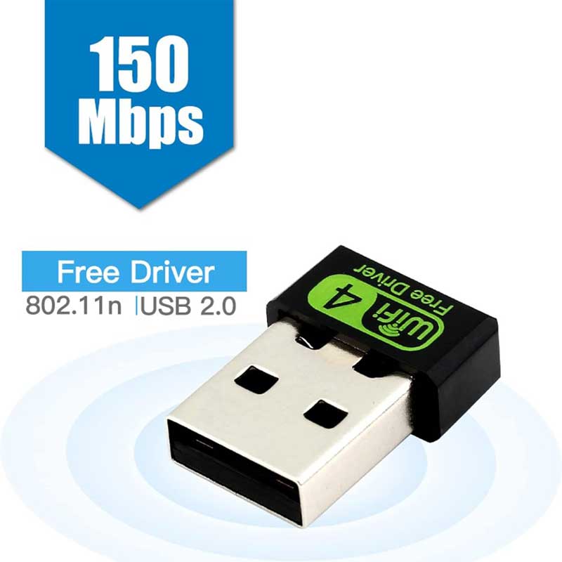 یک آداپتور وای‌فای USB بی‌سیم با درایور رایگان ۱۵۰ مگابیت بر ثانیه، تک باند ۲.۴ گیگاهرتزمیباشد.